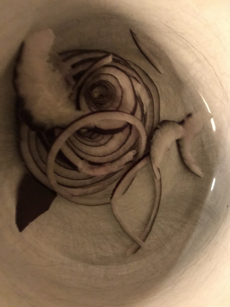 Nadat de winkel is gesloten begin ik traditie getrouw met het “trekken” van bouillon. Een proces wat lang duurt en waarmee ik langzaam in de “rust modus” kom nar een lang jaar werken. Verder zorg ik ervoor dat alle basis bereidingen aanwezig zijn in huis. Naast bouillon maak ik een gastrique, vries ik alvast deeg in voor vlaaien en taarten en zorg ik dat alle basis ingrediënten in huis zijn. Denk dan aan chocolade, room, boter, bloem, aardappelen, melk, kaas, eieren, witte wijn en rijst. Met deze ingrediënten kan ik in een handomdraai een avond gevulde maaltijd op tafel zetten. Denk bijvoorbeeld aan een kaasplank of een velouté als voorgerecht. Als hoofdgerecht een lamskroon met kruidenkorst, een gevulde risotto of een varkensrollade met mosterd- room- saus. Afsluitend met een snelle chocolade soufflé, een perentaart of een kwarktaart uit de oven.